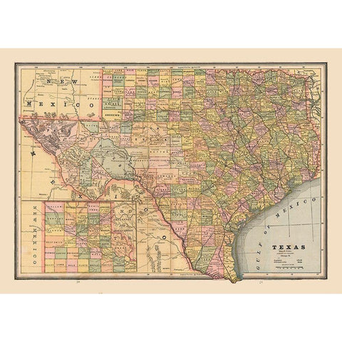 Texas, United States - Cram 1888 Black Modern Wood Framed Art Print by Cram