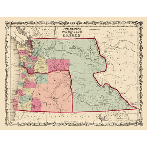 Washington, Oregon - Johnson 1860 Black Modern Wood Framed Art Print by Johnson