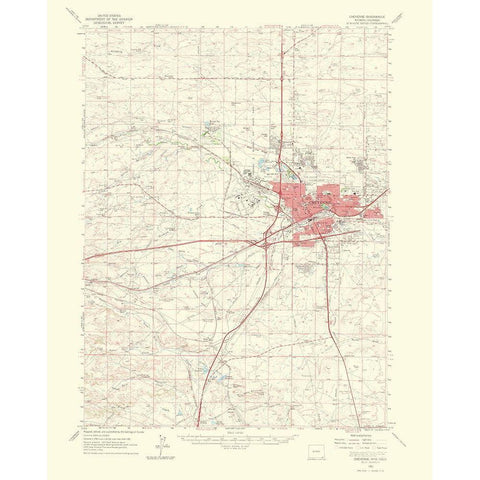 Cheyenne Wyoming Colorado Quad - USGS 1964 Black Modern Wood Framed Art Print by USGS
