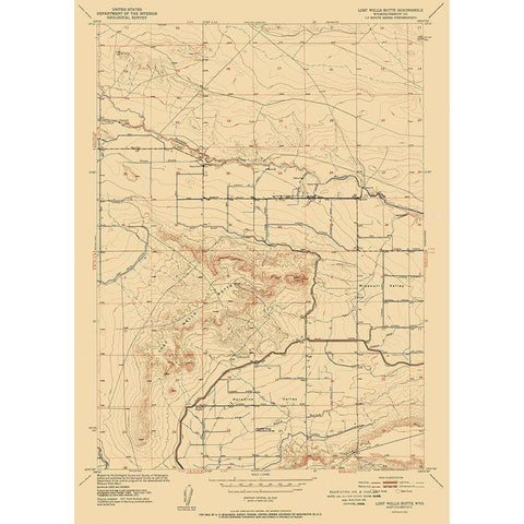Lost Wells Butte Wyoming Quad - USGS 1952 Black Modern Wood Framed Art Print by USGS