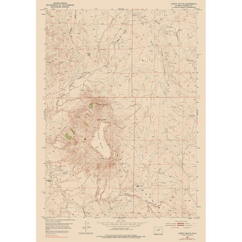 North Butte Wyoming Quad - USGS 1953 Black Modern Wood Framed Art Print by USGS