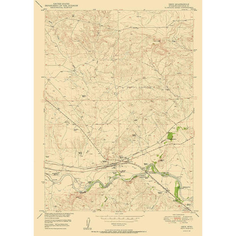 Orin Wyoming Quad - USGS 1950 Black Modern Wood Framed Art Print by USGS