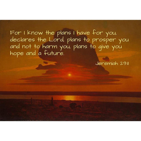 Bible Verse Quote Jeremiah 29:11, Arkhip Kuindzhi - Red Sunset on the Dnieper Black Modern Wood Framed Art Print by ArtsyQuotes