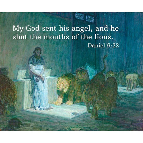 Bible Verse Quote Daniel 6:22, Henry Ossawa Tanner - Daniel in the Lions Den Black Modern Wood Framed Art Print by ArtsyQuotes