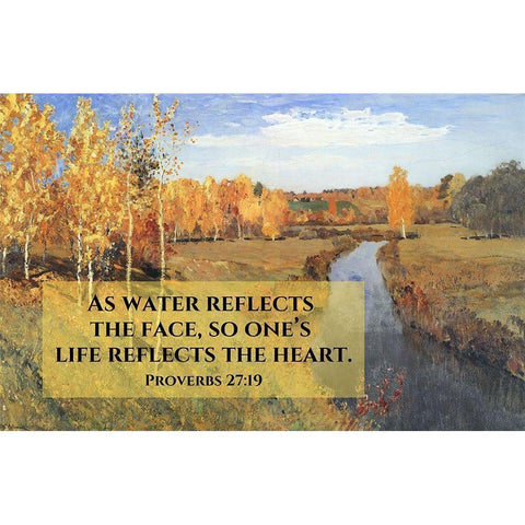 Bible Verse Quote Proverbs 27:19, Issac Levitan - Autumn Landscape I Black Modern Wood Framed Art Print by ArtsyQuotes