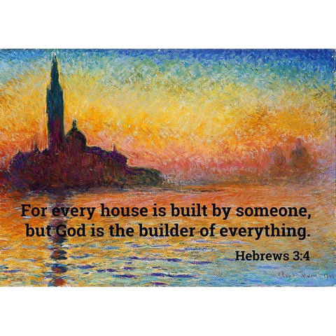 Bible Verse Quote Hebrews 3:4, Claude Monet - San Giorgio Maggiore at Dusk Black Modern Wood Framed Art Print by ArtsyQuotes