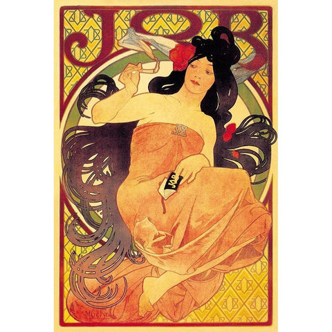 Job Black Modern Wood Framed Art Print by Mucha, Alphonse
