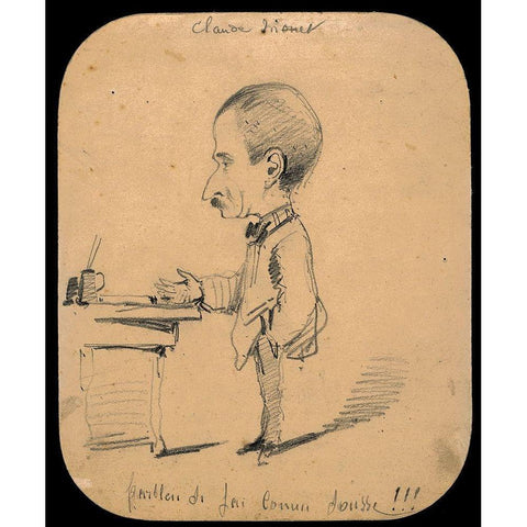 Caricature of a Man Standing by Desk Black Modern Wood Framed Art Print by Monet, Claude