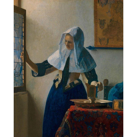 Young Woman with a Water Pitcher Black Modern Wood Framed Art Print by Vermeer, Johannes