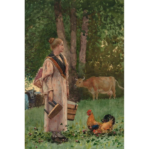 The Milk Maid Black Modern Wood Framed Art Print by Homer, Winslow
