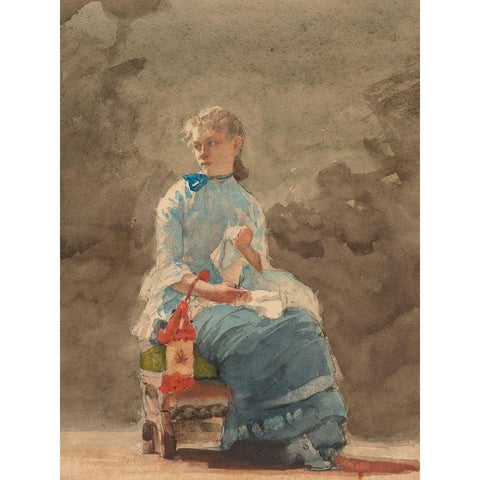 Young Woman Sewing Black Modern Wood Framed Art Print by Homer, Winslow