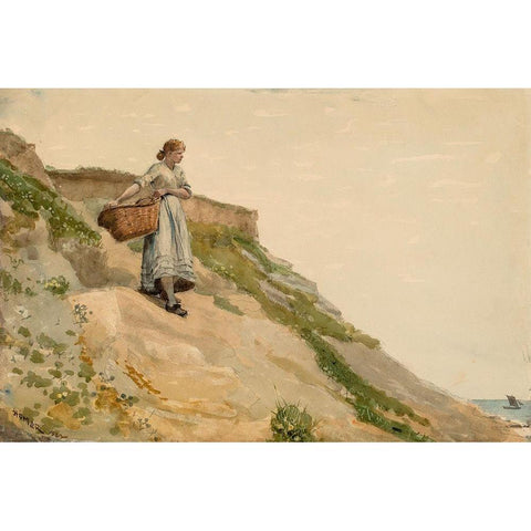 Girl Carrying a Basket Black Modern Wood Framed Art Print by Homer, Winslow