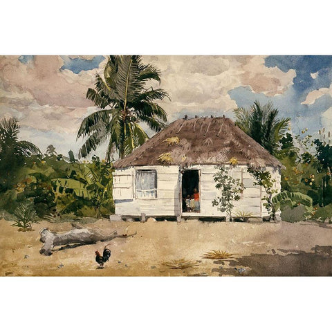 Native hut at Nassau Black Modern Wood Framed Art Print by Homer, Winslow