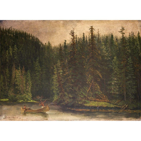 Indian Hunters in Canoe Black Modern Wood Framed Art Print by Bierstadt, Albert