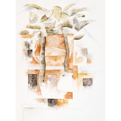 Bermuda-Houses Seen Through Trees Black Modern Wood Framed Art Print by Demuth, Charles