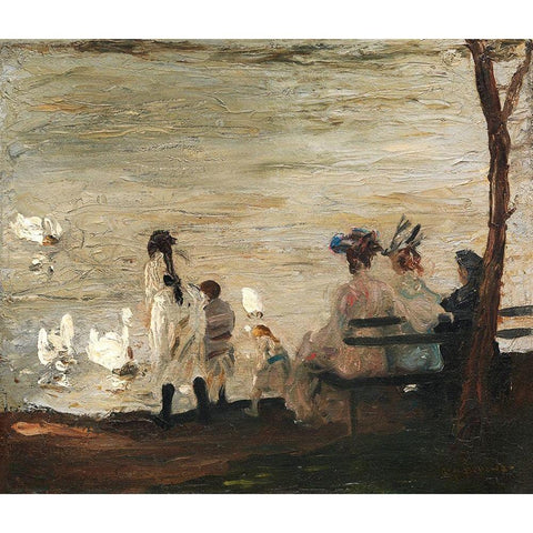 Swans in Central Park Black Modern Wood Framed Art Print by Bellows, George
