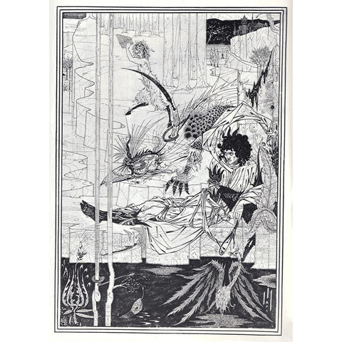 Morte DArthur 1893 - How Arthur saw Beast Black Modern Wood Framed Art Print by Beardsley, Aubrey