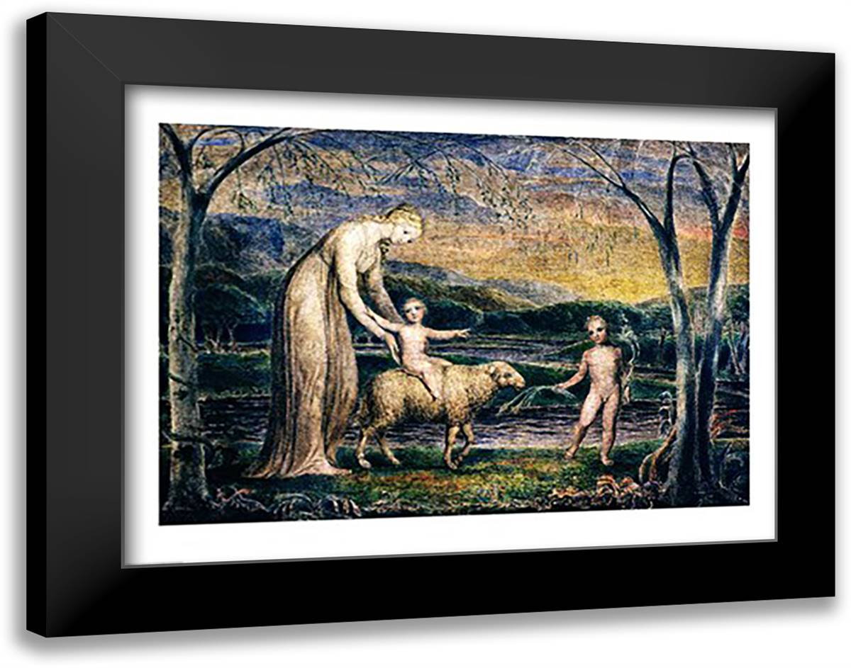 Our Lady with the Infant Jesus Riding on a Lamb with St John 28x22 Black Modern Wood Framed Art Print Poster by Blake, William
