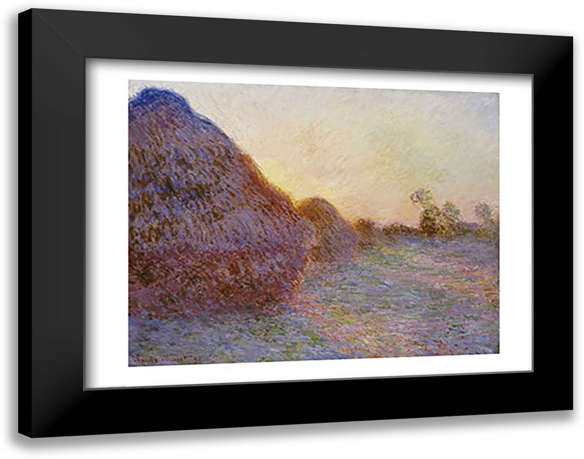 Haystacks 28x22 Black Modern Wood Framed Art Print Poster by Monet, Claude