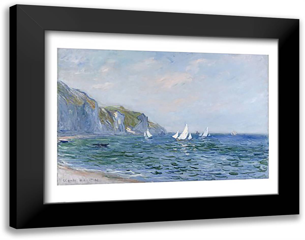 Cliffs and Sailboats at Pourville 28x22 Black Modern Wood Framed Art Print Poster by Monet, Claude