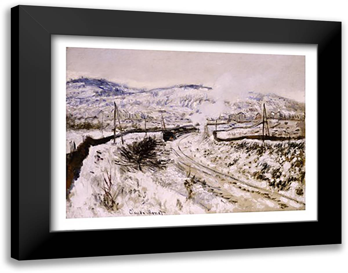 Train in the Snow at Argenteuil 28x22 Black Modern Wood Framed Art Print Poster by Monet, Claude