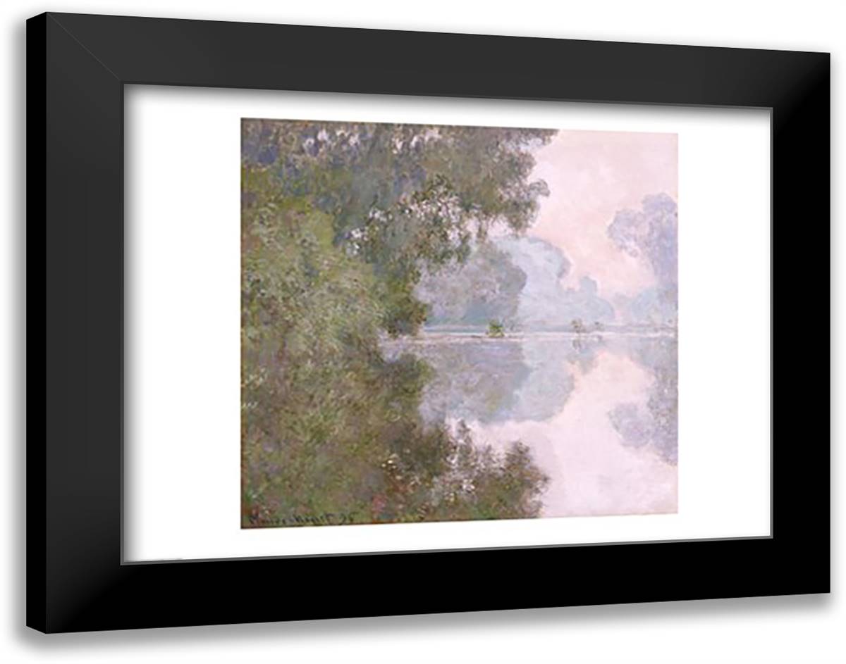 Morning on the Seine, near Giverny, 1896 28x22 Black Modern Wood Framed Art Print Poster by Monet, Claude