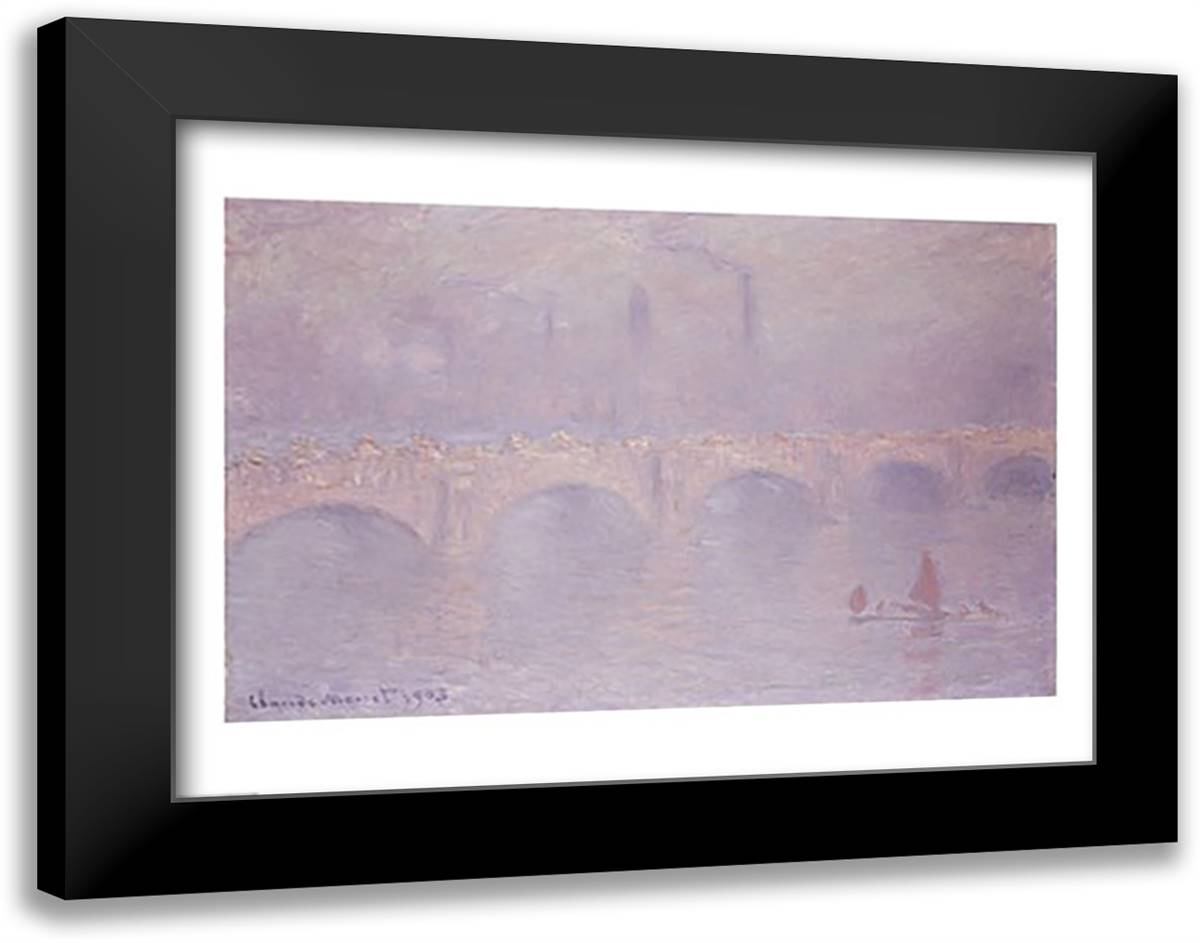 Waterloo Bridge, Hazy Sunshine 28x22 Black Modern Wood Framed Art Print Poster by Monet, Claude