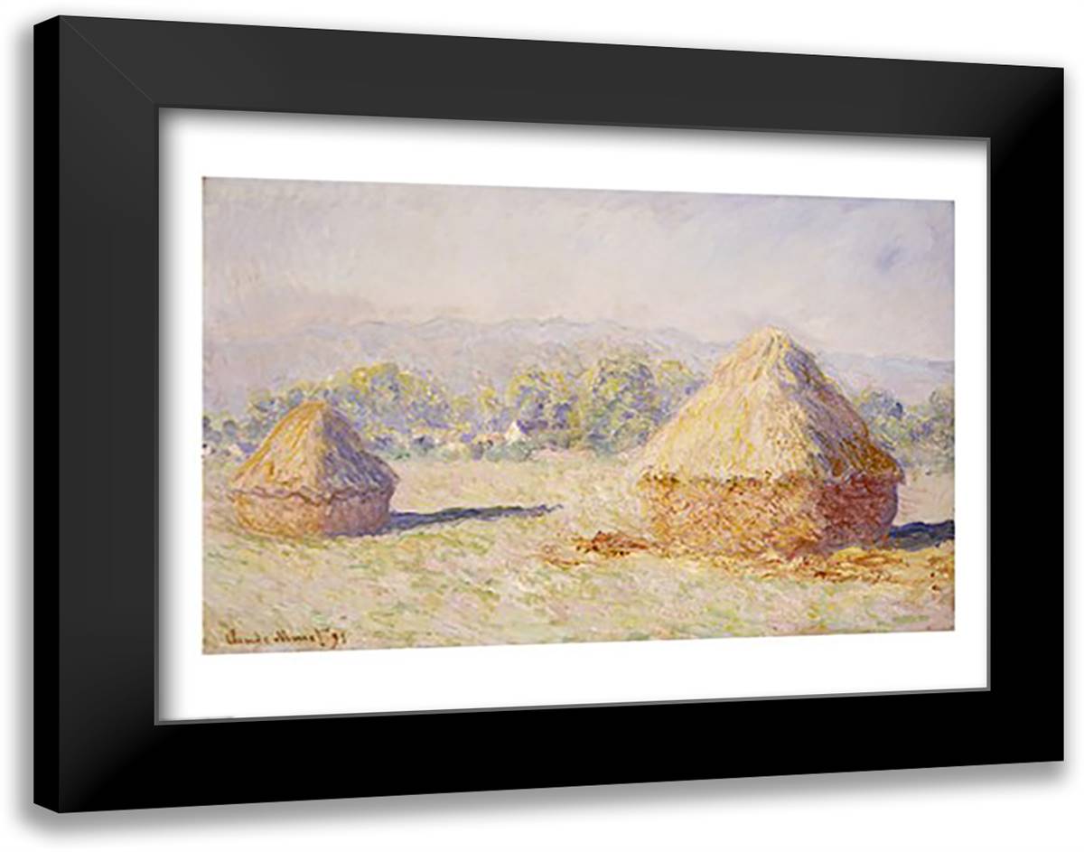 Haystacks, Morning Effect 28x22 Black Modern Wood Framed Art Print Poster by Monet, Claude