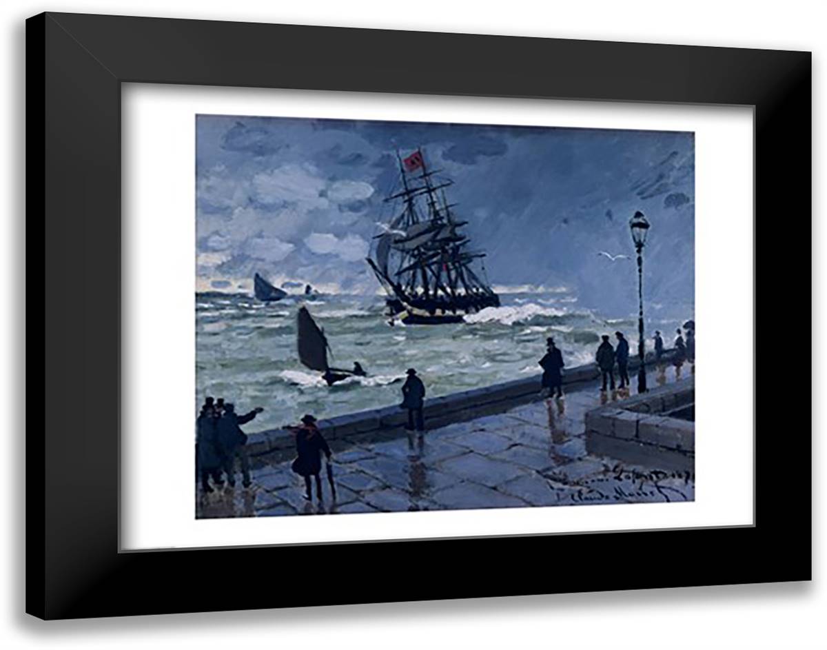 The Jetty at Le Havre, Bad Weather, 1870 28x22 Black Modern Wood Framed Art Print Poster by Monet, Claude