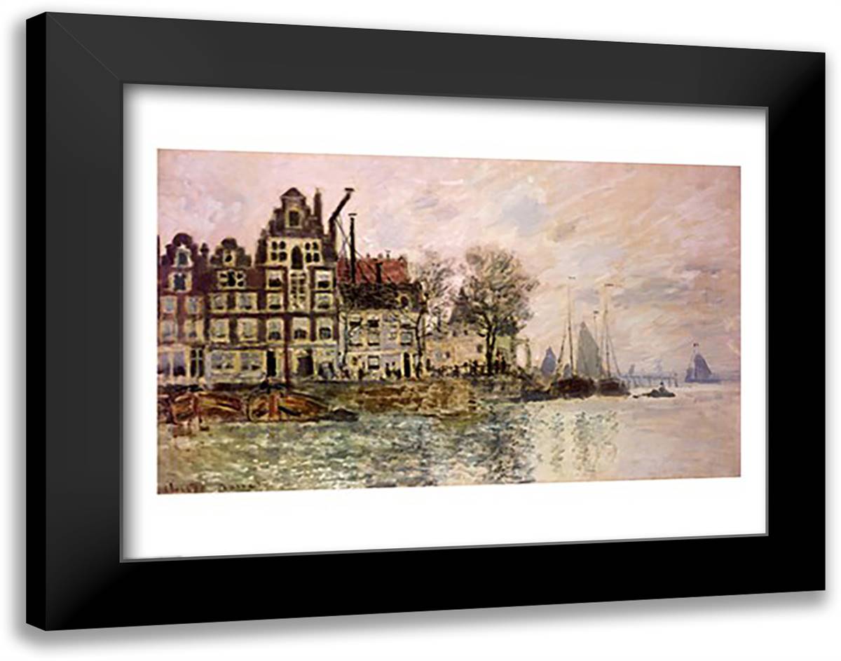 The Port of Amsterdam 28x22 Black Modern Wood Framed Art Print Poster by Monet, Claude
