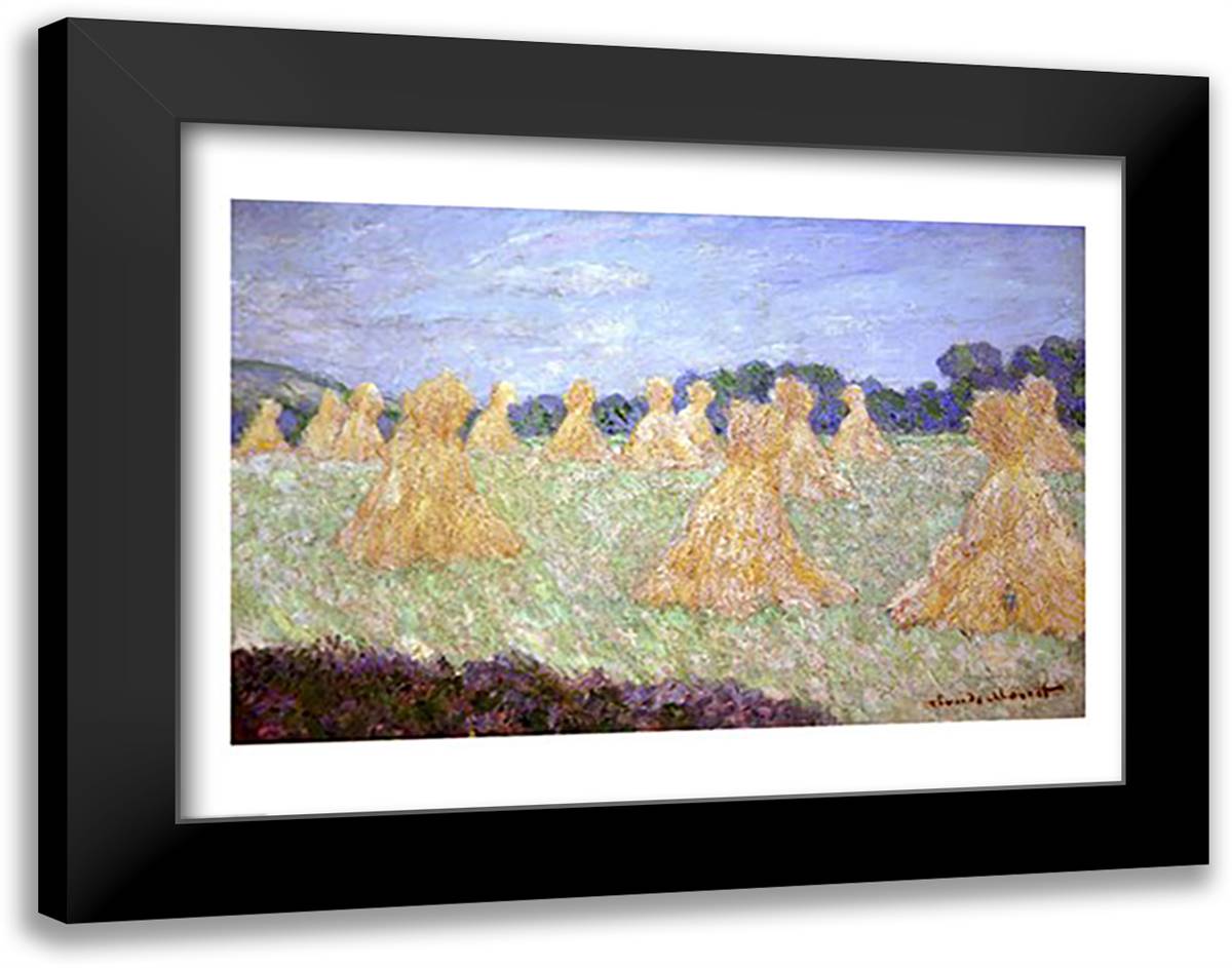Haystacks, The young Ladies of Giverny, Sun Effec 28x22 Black Modern Wood Framed Art Print Poster by Monet, Claude