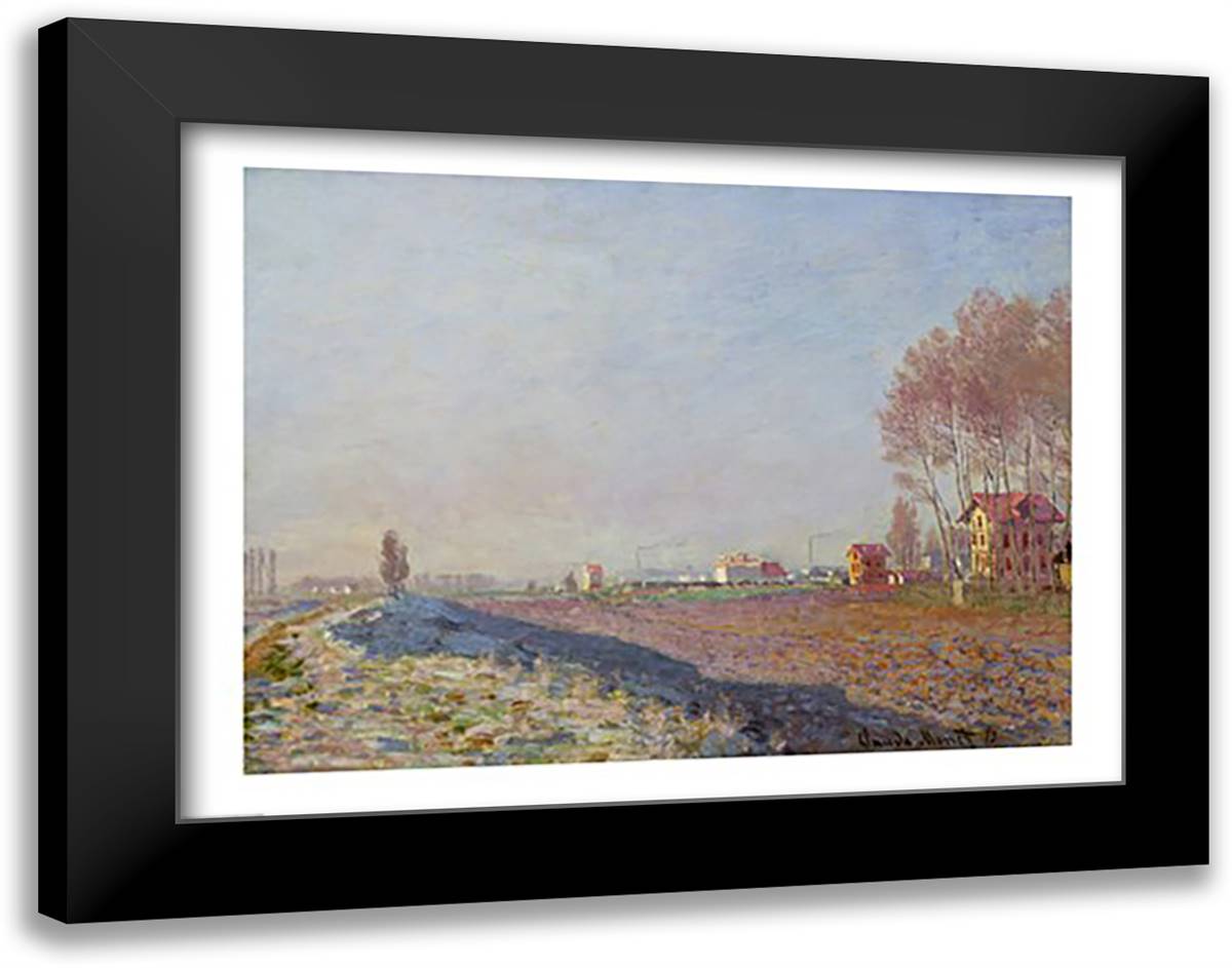 The Plain of Colombes, White Frost, 1873 28x22 Black Modern Wood Framed Art Print Poster by Monet, Claude
