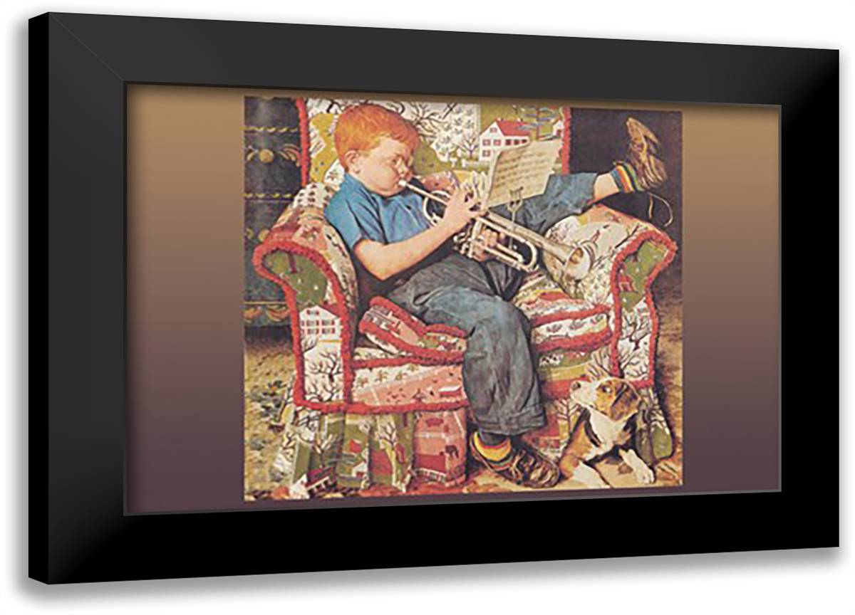 Trumpet Practice 22x16 Black Modern Wood Framed Art Print Poster by Rockwell, Norman
