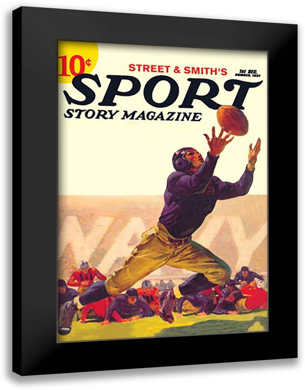 Way Navy Plays Football 16x22 Black Modern Wood Framed Art Print Poster