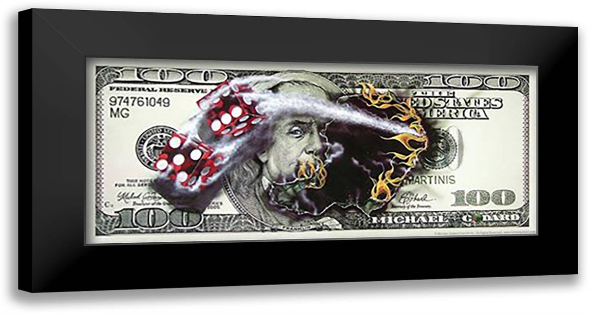 $100 Bill With Dice 20x11 Black Modern Wood Framed Art Print Poster by Godard, Michael