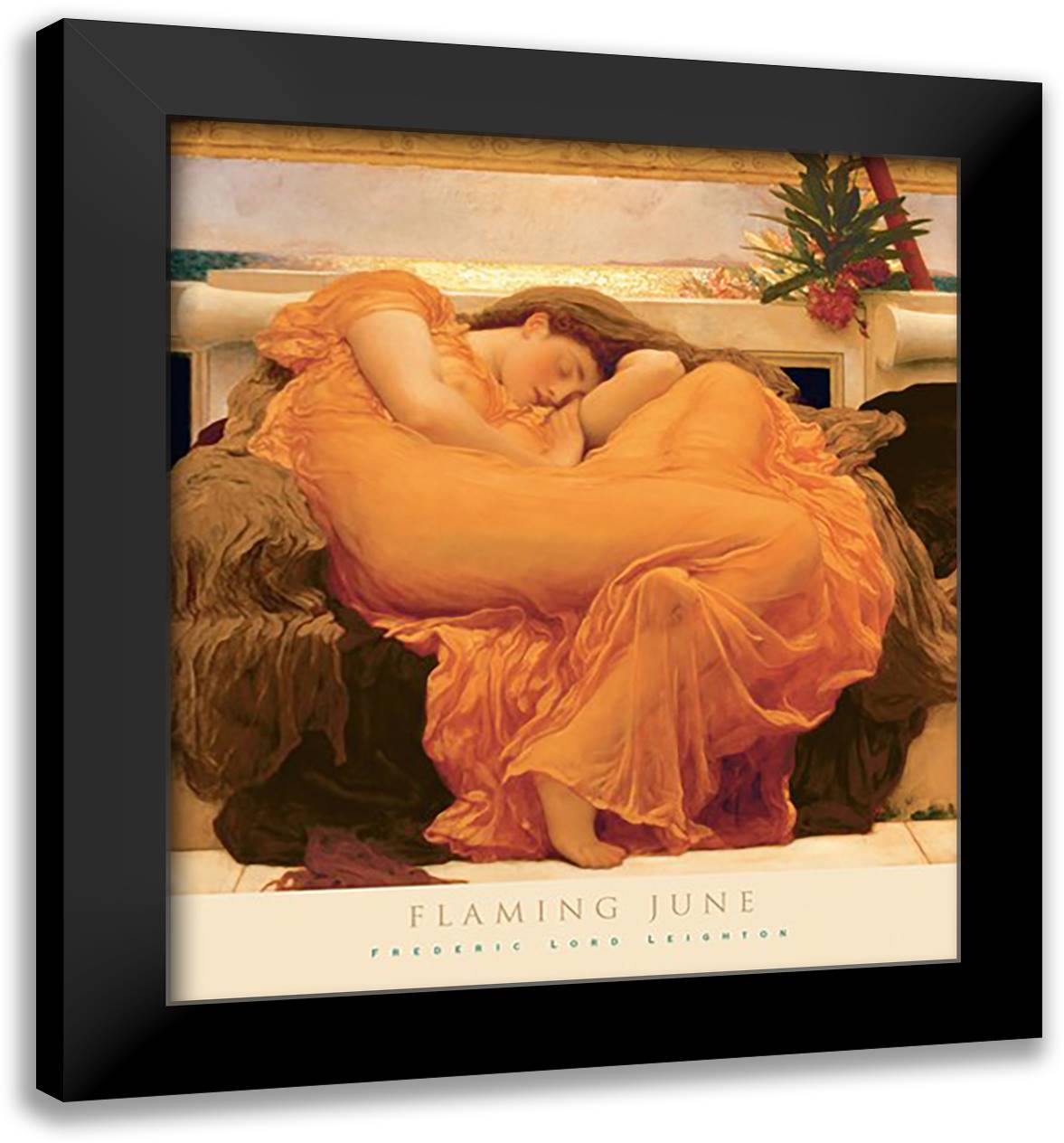 Flaming June 28x32 Black Modern Wood Framed Art Print Poster by Leighton, Frederic