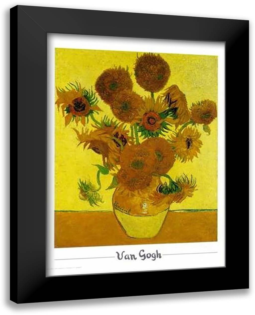 Vase with Fifteen Sunflowers, c.1888 28x36 Black Modern Wood Framed Art Print Poster by Van Gogh, Vincent