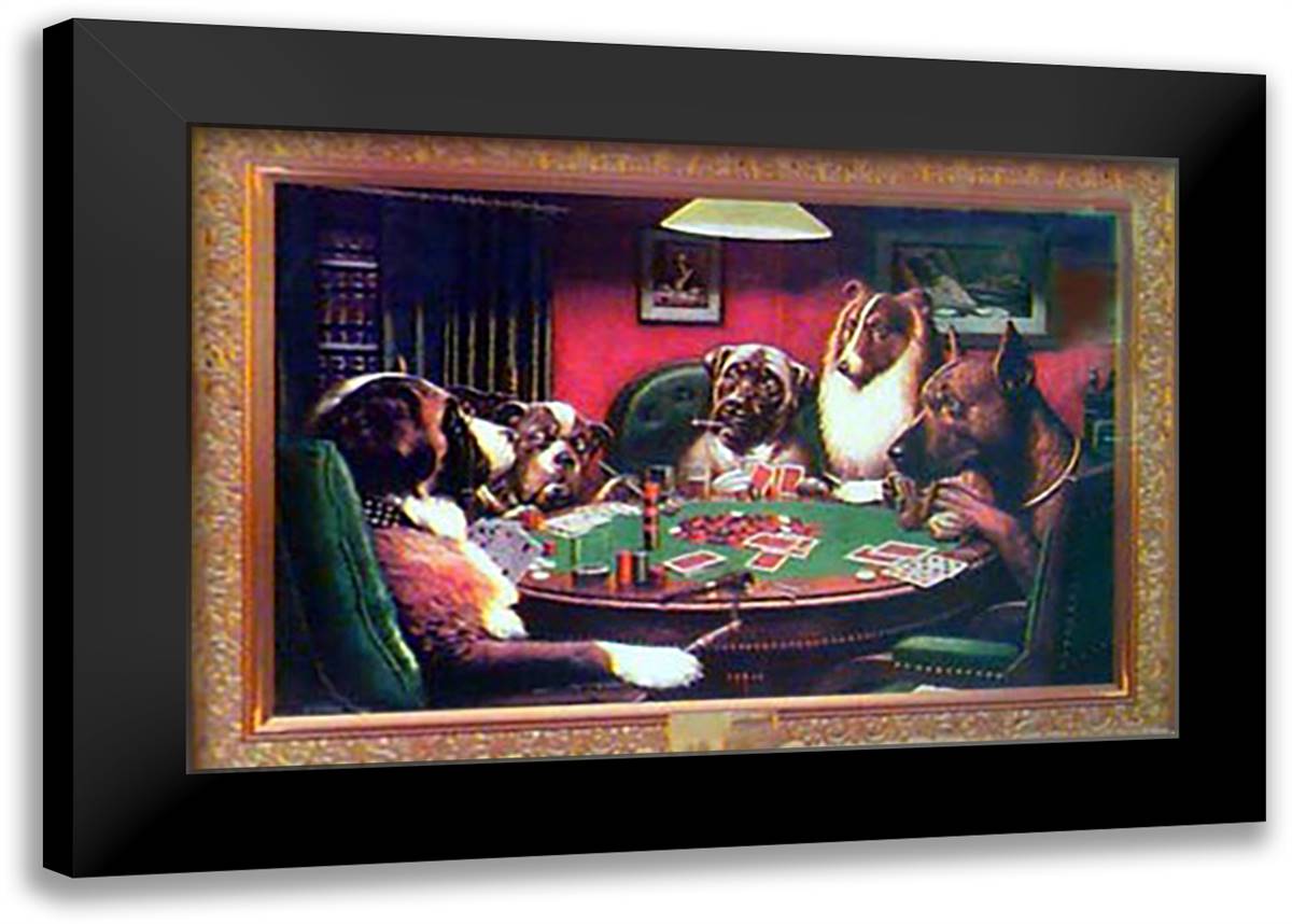 DOGS PLAYING POKER 40x28 Black Modern Wood Framed Art Print Poster