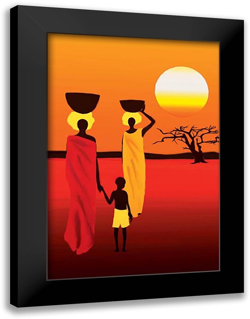 African Savanna Women 28x40 Black Modern Wood Framed Art Print Poster
