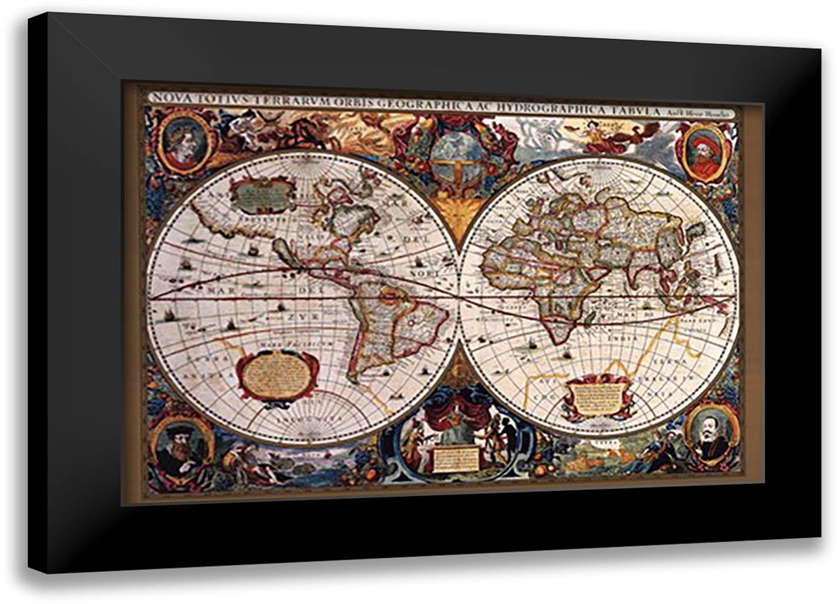17th Century World Map 40x28 Black Modern Wood Framed Art Print Poster