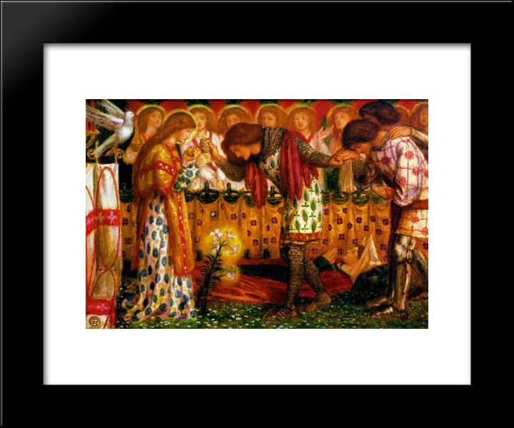 How Sir Galahad, Sir Bors And Sir Percival Were Fed With The Sanc Grael; But Sir Percival'S Sister Died By The Way 20x24 Black Modern Wood Framed Art Print Poster by Rossetti, Dante Gabriel