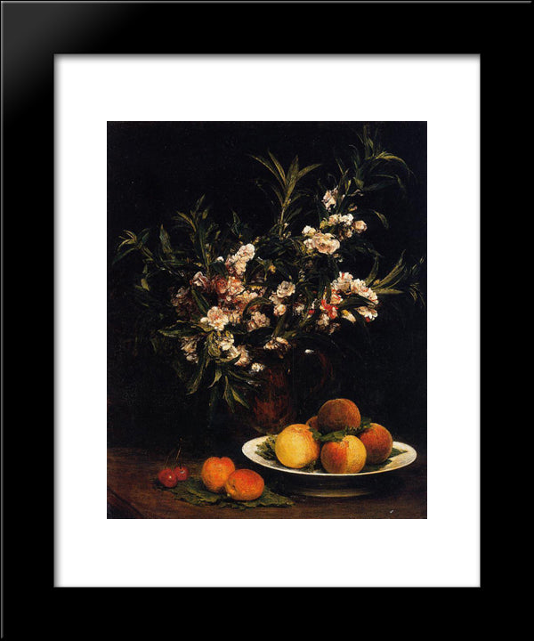 Still Life: Balsimines, Peaches And Apricots 20x24 Black Modern Wood Framed Art Print Poster by Fantin Latour, Henri