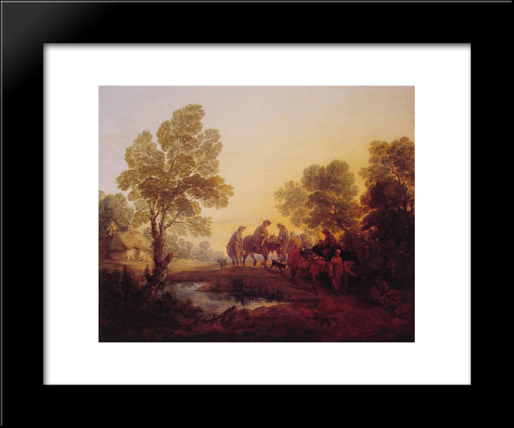 Evening Landscape ' Peasants And Mounted Figures 20x24 Black Modern Wood Framed Art Print Poster by Gainsborough, Thomas