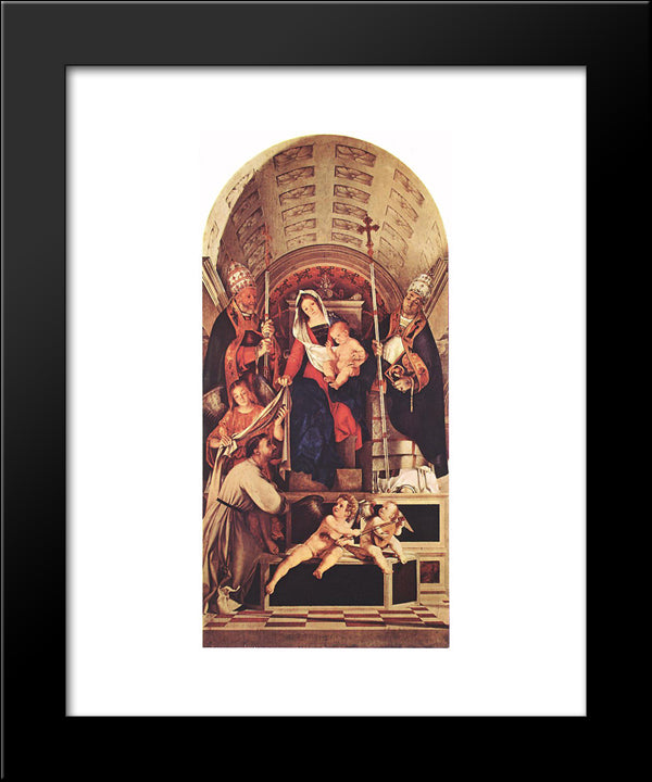 Madonna And Child With Sts Dominic, Gregory And Urban 20x24 Black Modern Wood Framed Art Print Poster by Lotto, Lorenzo