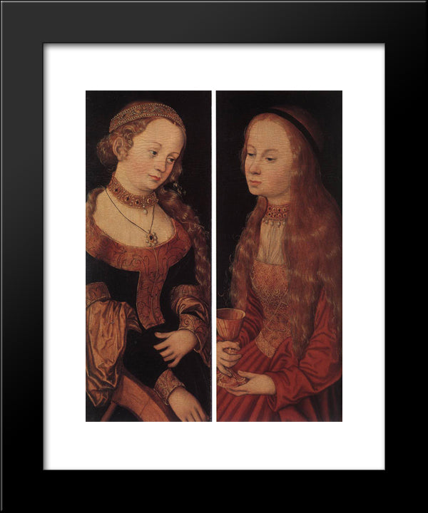 St Catherine Of Alexandria And St Barbara 20x24 Black Modern Wood Framed Art Print Poster by Cranach the Elder, Lucas