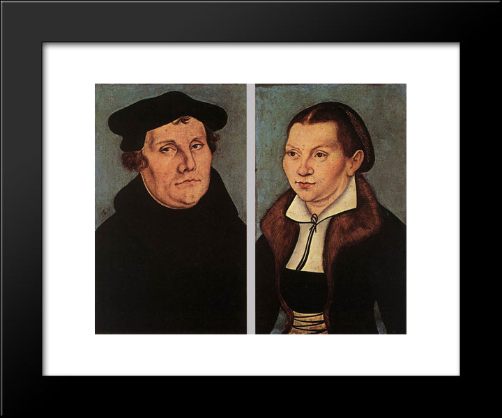 Portraits Of Martin Luther And Catherine Bore 20x24 Black Modern Wood Framed Art Print Poster by Cranach the Elder, Lucas