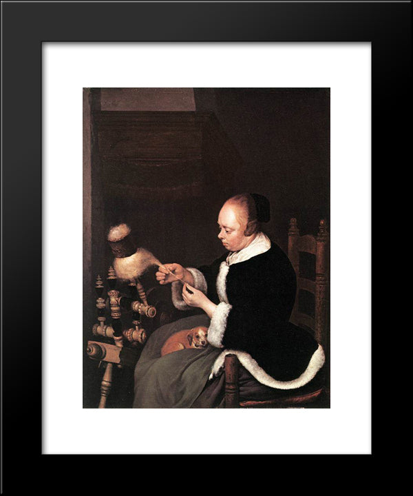 A Woman Spinning 20x24 Black Modern Wood Framed Art Print Poster by Terborch, Gerard