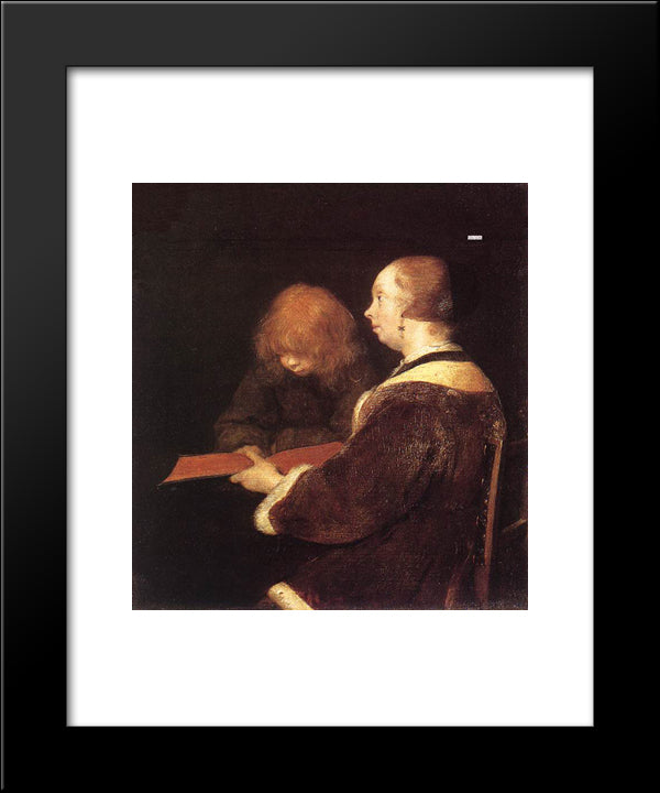 The Reading Lesson 20x24 Black Modern Wood Framed Art Print Poster by Terborch, Gerard