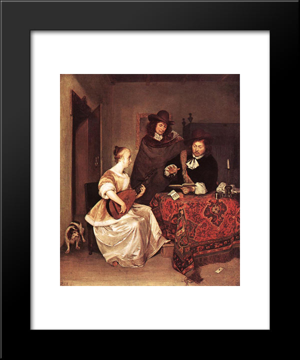 A Young Woman Playing A Theorbo To Two Men 20x24 Black Modern Wood Framed Art Print Poster by Terborch, Gerard