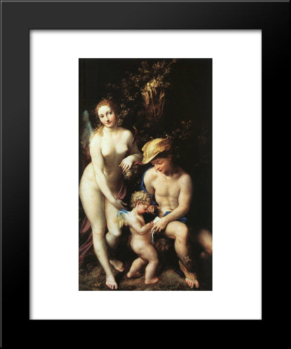 The Education Of Cupid 20x24 Black Modern Wood Framed Art Print Poster by Correggio